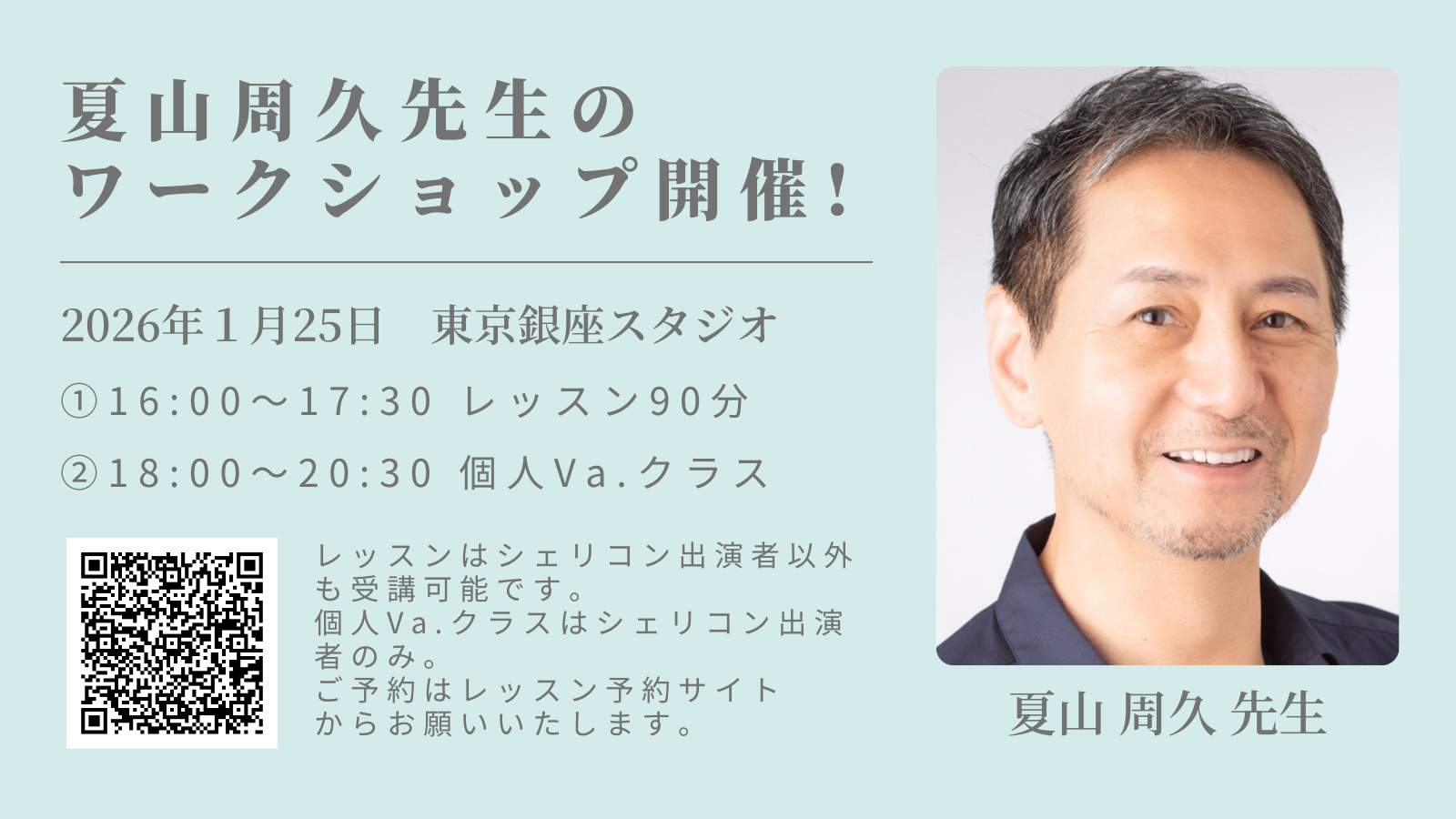 2026年1月25日の東京銀座スタジオにて、夏山周久先生のワークショップを開催いたします!